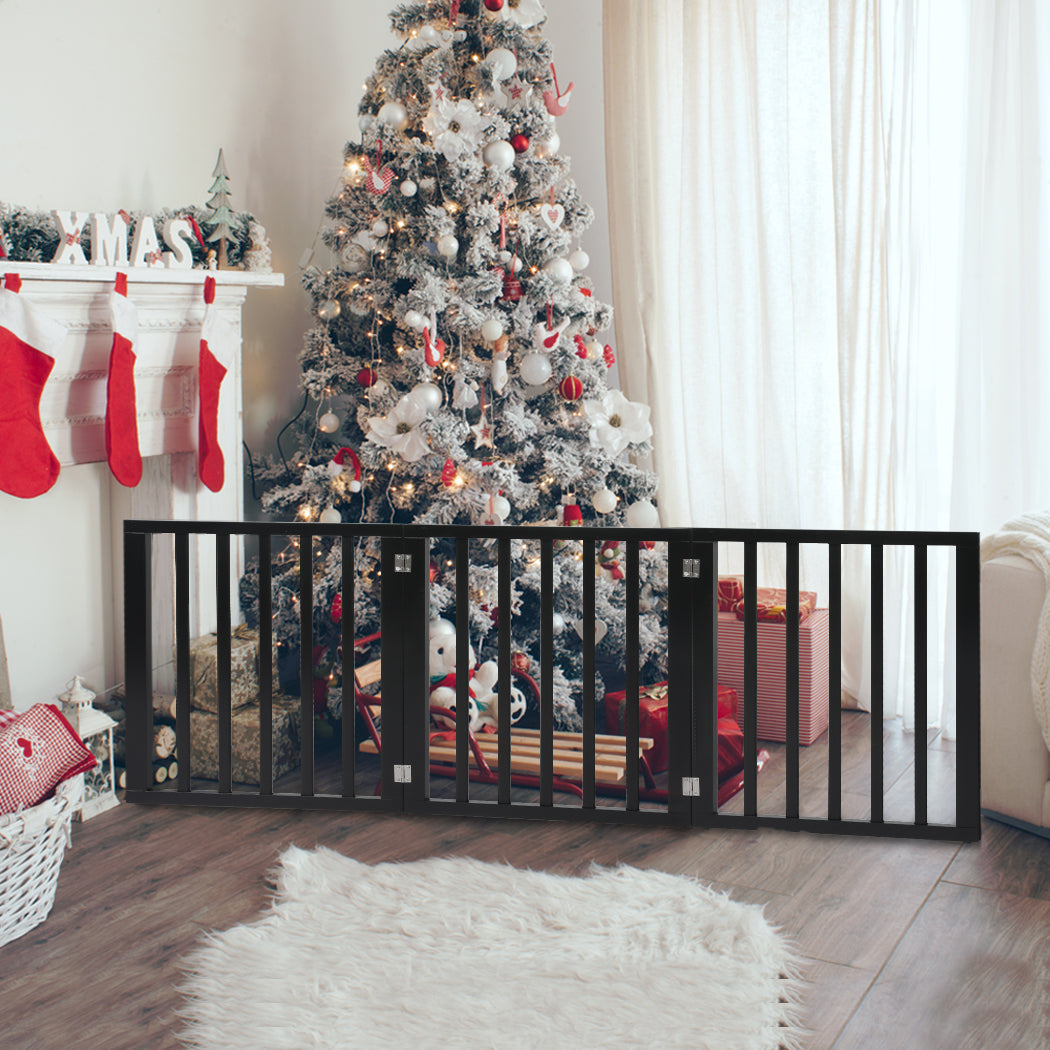 3 Panels Wooden Pet Gate Dog Fence Safety Stair Barrier Security Door Black