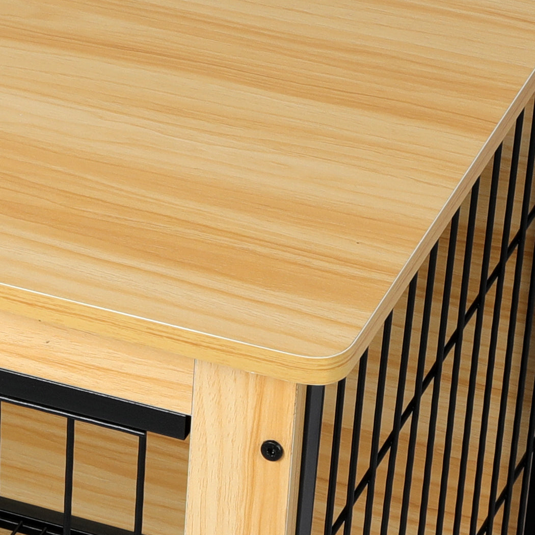 Wooden Wire Dog Kennel Side End Table Steel Puppy Crate Indoor Pet House XL - Wood XL