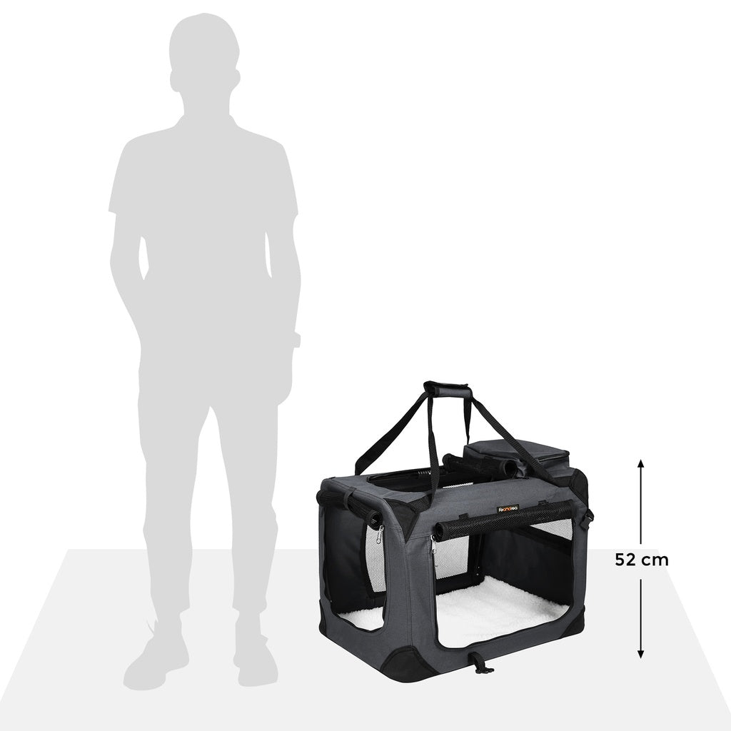 FEANDREA Dog Kennel Transport Box Folding Fabric Pet Carrier 70cm Grey