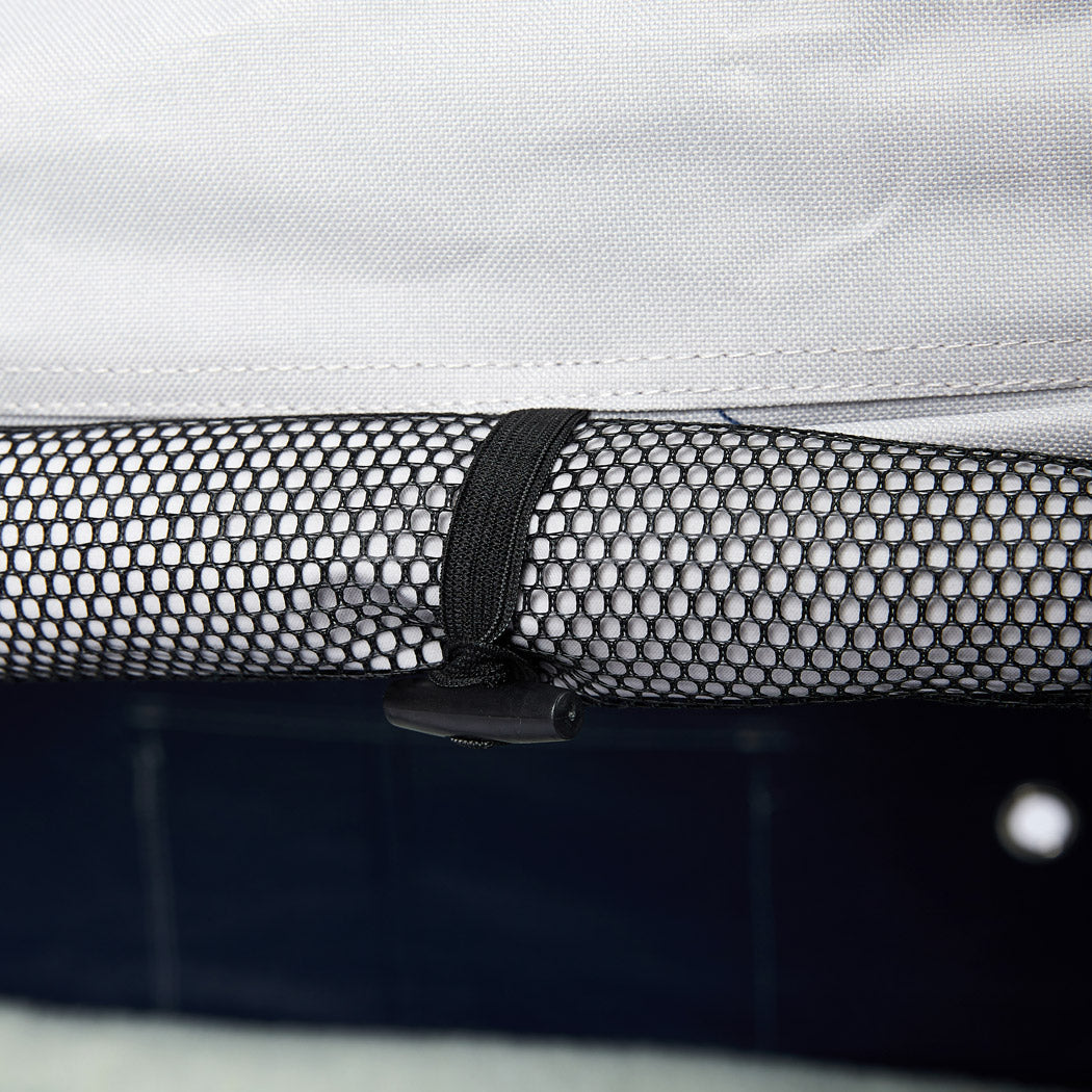 This pet bed is made of sturdy 600D oxford fabric for long-lasting performance. The entire structure is supported with thickened steel frame for added stability. Its steel construction can easily withstand rust and corrosion. What if they try to chew? Do not worry, our product is made pet friendly, built to provide exceptional resistance towards bite and wear. It is convenience at hands with two pockets, a carrying strap, and shade cloth. Simple to store with its hook and loop mechanism. Easily detachable for machine or hand wash.